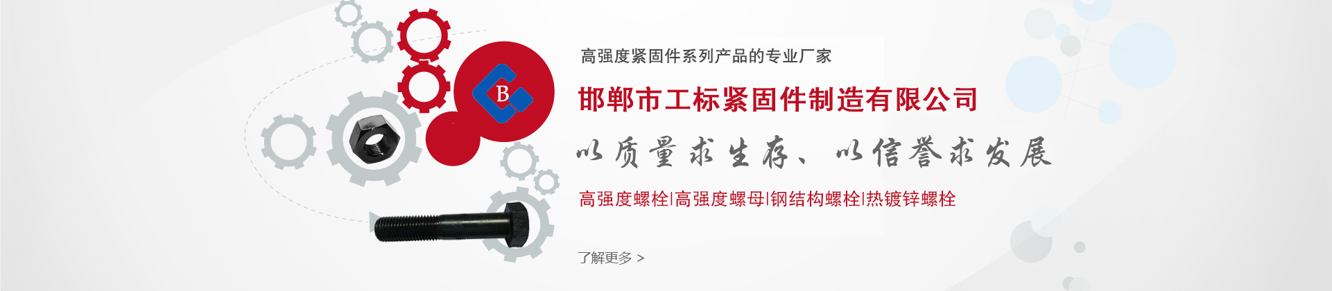 邯鄲市工標(biāo)緊固件制造有限公司位于標(biāo)準(zhǔn)件生產(chǎn)基地---河北省永年縣,是一家專業(yè)研發(fā)及生產(chǎn)鋼高強(qiáng)度緊固件系列產(chǎn)品的專業(yè)廠家。工標(biāo)緊固件公司擁有各類自動化生產(chǎn)及檢測設(shè)備,采用進(jìn)口及大型鋼廠原材料,以現(xiàn)代化企業(yè)制度為運(yùn)營機(jī)制,保持產(chǎn)品質(zhì)量。 我們主要產(chǎn)品有:高強(qiáng)度螺栓、高強(qiáng)度螺母、鋼結(jié)構(gòu)螺栓、扭剪型螺栓、塔吊螺栓、高強(qiáng)度加長螺栓、焊釘,鋼結(jié)構(gòu)用大六角頭高強(qiáng)度螺栓連接副、鋼結(jié)構(gòu)用扭剪型高強(qiáng)度螺栓連接副、鋼網(wǎng)架螺栓球節(jié)點(diǎn)用高強(qiáng)度螺栓、高強(qiáng)度內(nèi)外六角螺栓系列,玻璃幕墻T型螺栓,T型槽螺栓,地腳螺栓,雙頭螺栓,四方頭螺栓,各種異型螺栓、熱鍍鋅螺栓、達(dá)克羅螺栓,國內(nèi)外標(biāo)準(zhǔn)各類高強(qiáng)度緊固件,可訂做各種高強(qiáng)度異型件。產(chǎn)品廣泛用于航天、建筑、交通、電力、軍工等行業(yè),經(jīng)過多年發(fā)展,產(chǎn)品質(zhì)量與售后服務(wù)得到了客戶及業(yè)界人士的好評!
